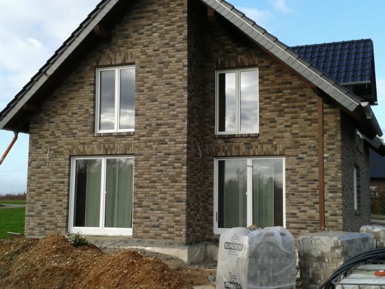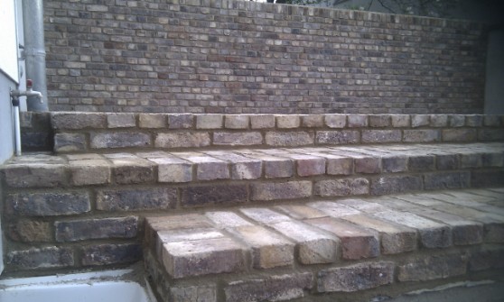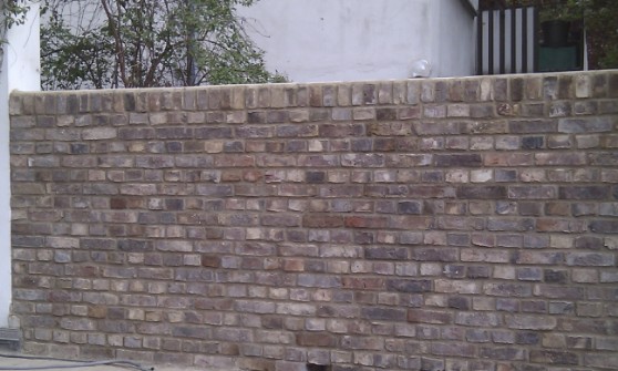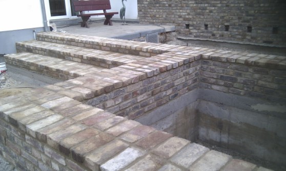 Mauerarbeiten aus Feldbrandtsteine in einem Garten