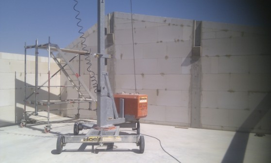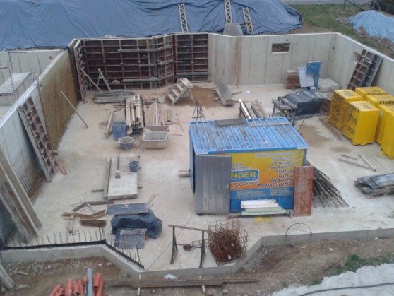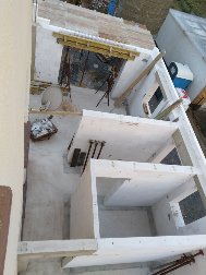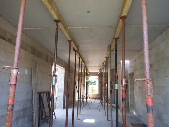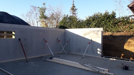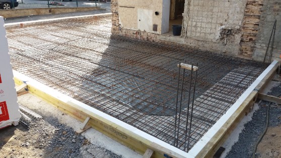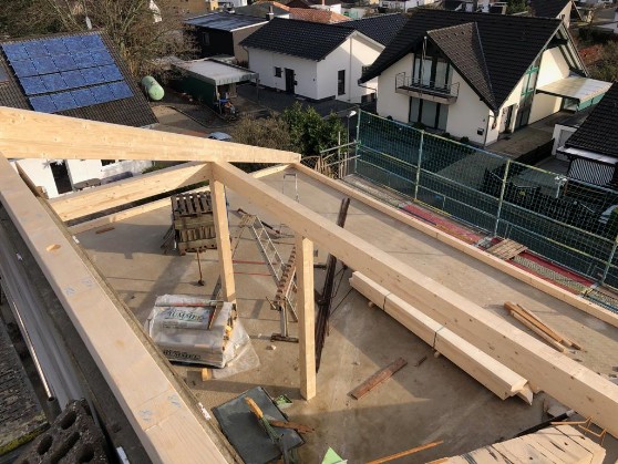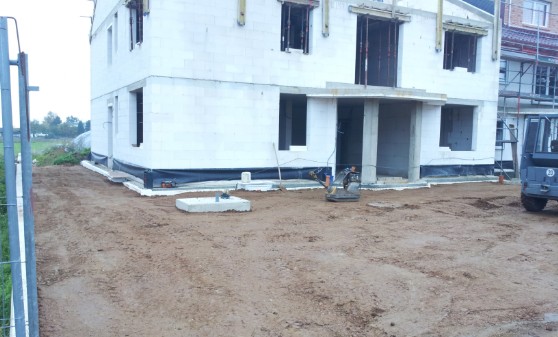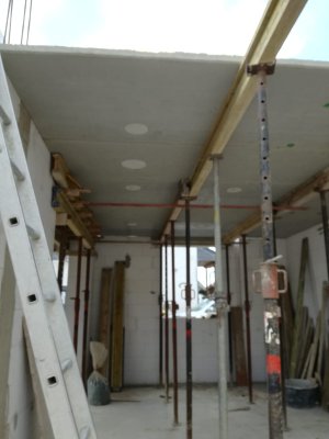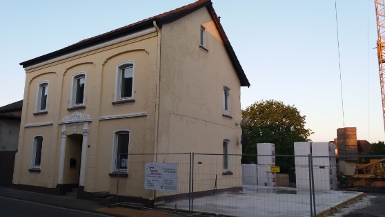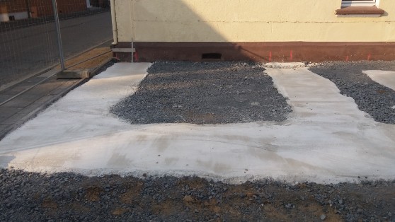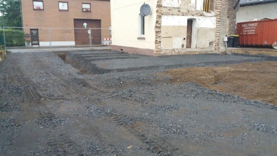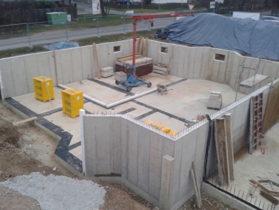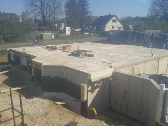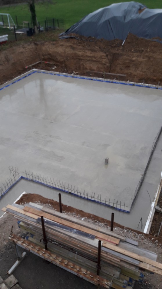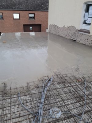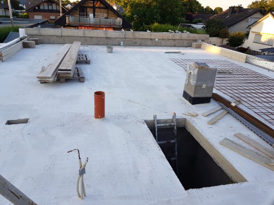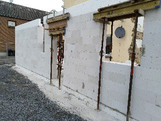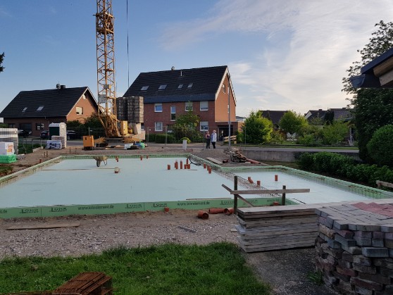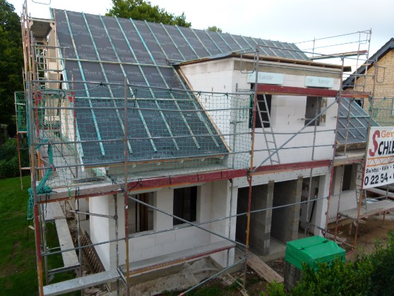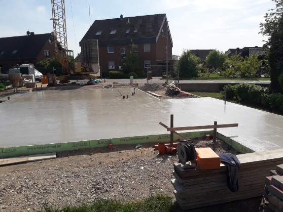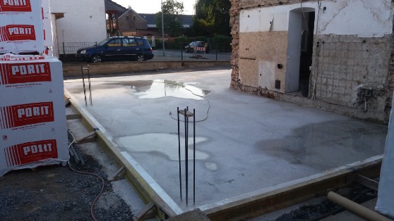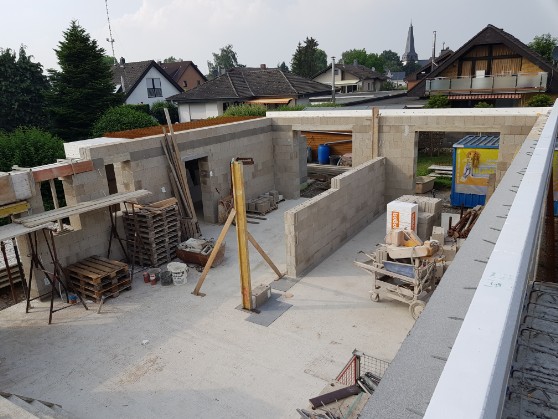 Anbau mit Balkon an einen Altbestand in Dom Esch, Bodenblatte mit Fundamenten, Wände aus Porenbeton-Steinen, ABI-Elementdecke